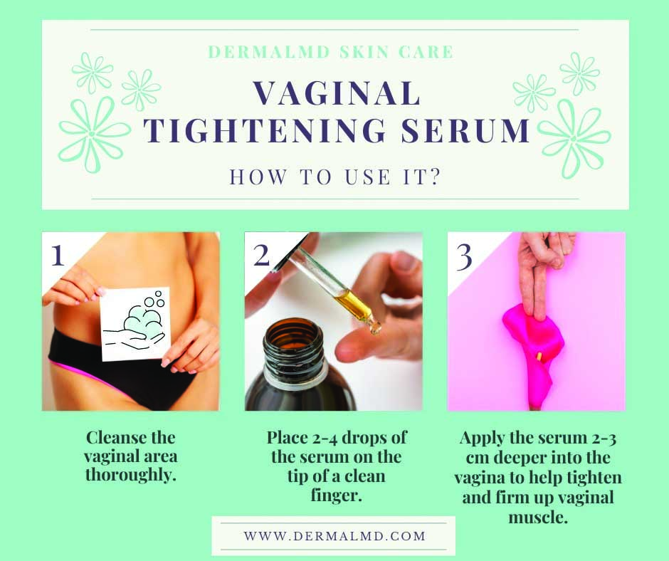 Before use, wash the vaginal area with a mild soap and warm water. Pat dry with a clean towel. Apply the serum to the inside and outside of the vagina using a cotton pad or clean fingers. Cover the area around the labia (excluding the clitoris). Leave on for 30+ minutes, then rinse. Use daily for best results. Safe for sensitive skin.